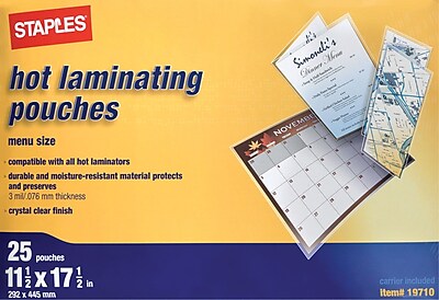 Laminating pouch ID size Each CALL Laminating pouch A4 Each CALL Laminating pouch L/S Each CALL flexible laminating systems on the Staples, #10 (for mini-stapling machines) Box CALL Staples, #9/14 Box CALL Staples, SB 35, 3/8" Box CALL ... View This Document